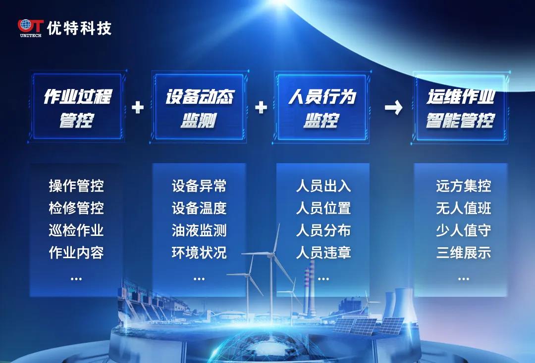 優(yōu)特科技基于工業(yè)物聯(lián)網(wǎng)技術,從作業(yè)過程管控、設備智能監(jiān)測、人員行為管控三個方面進行運維作業(yè)智能管控建設,實現(xiàn)了對風電運維作業(yè)過程的智能化、主動性、強制性、可視化管控。系統(tǒng)聚焦安全、優(yōu)化管理、提升效率,進一步推動了智慧風場“無人值班、少人值守”建設目標的達成。